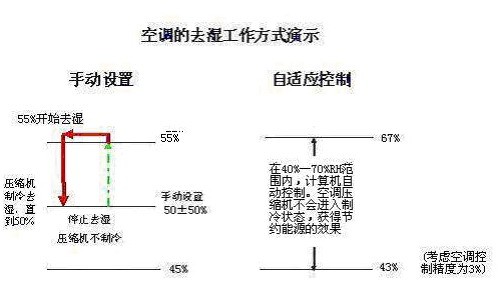 改变手动设置压缩机频繁工作的状况,让空调湿度设置点,在目标值内尽可能与环境湿度接近,从而大大节约了空调用电度数。